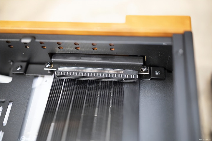 装配显卡前,可以先固定原装的PCIE延伸线,延伸线的PCB两侧提供了多孔位的螺丝孔,可以让玩家进行微调,便于更好的适配多样不同的显卡。