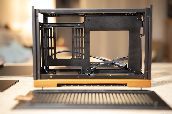 乔念念伯T9的底部使用了一块厚达20mm的实木(胡桃木)底座,一边幅开槽经营,缜密木纹加上定制进风孔说念,能让机箱里面的空气合理轮回,结构紧凑,视觉弘扬也相等丽都。