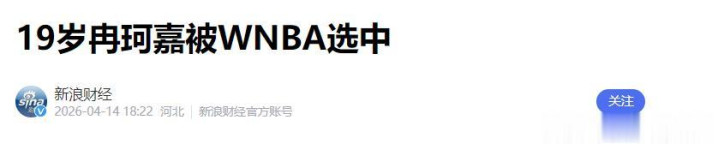 新浪财经——19岁冉珂嘉被WNBA选中