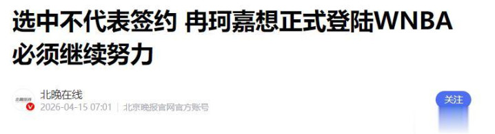 北晚在线——选中不代表签约 冉珂嘉想正经登陆WNBA必须赓续勤苦