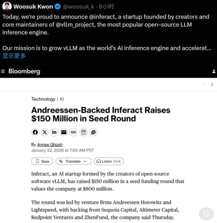 Inferact 的责任是将 vLLM 发展成为寰宇率先的 AI 推理引擎,并通过缩短推理资本、加速推理速率来加速 AI 的发展。