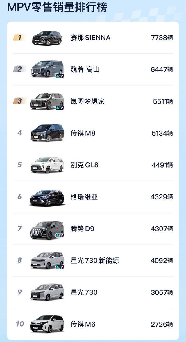 MPV:主打高端局,赛那连接稳坐销冠宝座