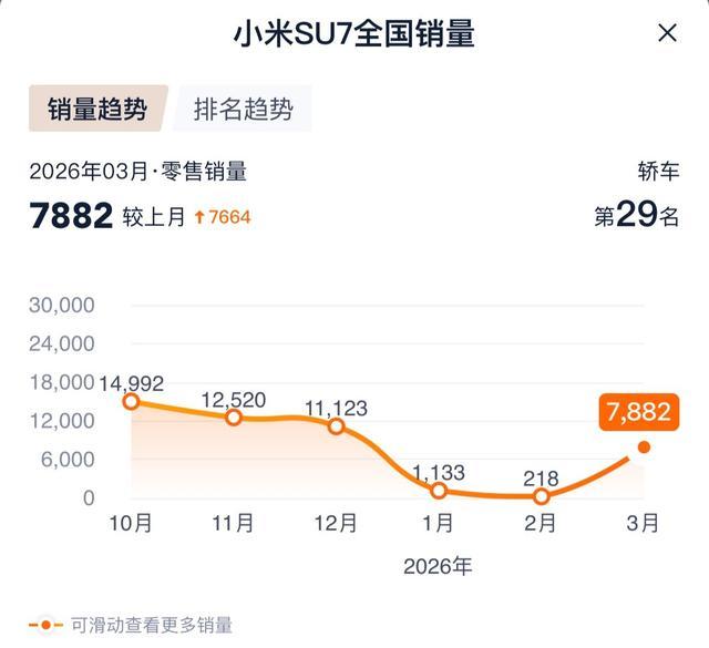 除了TOP10,3月轿车销量榜单中,还有部分新车型的到来值得关爱。比如小米SU7,获利于全新小米SU7的上市录用,3月小米SU7月录用量一经回升至7882辆。界限4月2日,小米SU7锁单量一经防碍4万台。预测4月,在新款车型的助力下,包括小米SU7、小鹏MONA M03等热点新势力车型的销量以及排行均有望进一步增长和回升。