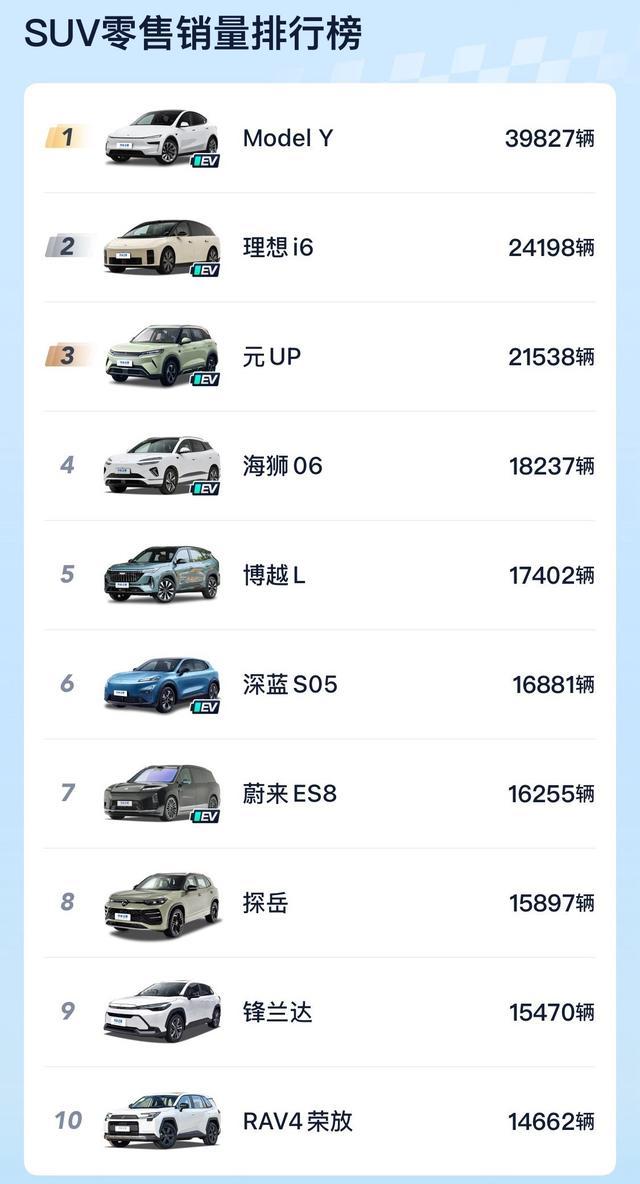 SUV:Model Y无东说念主撼动,蔚来ES8成TOP10中最贵车型