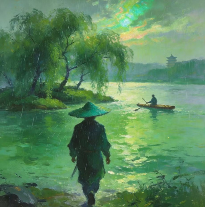 青箬笠走出斜风细雨