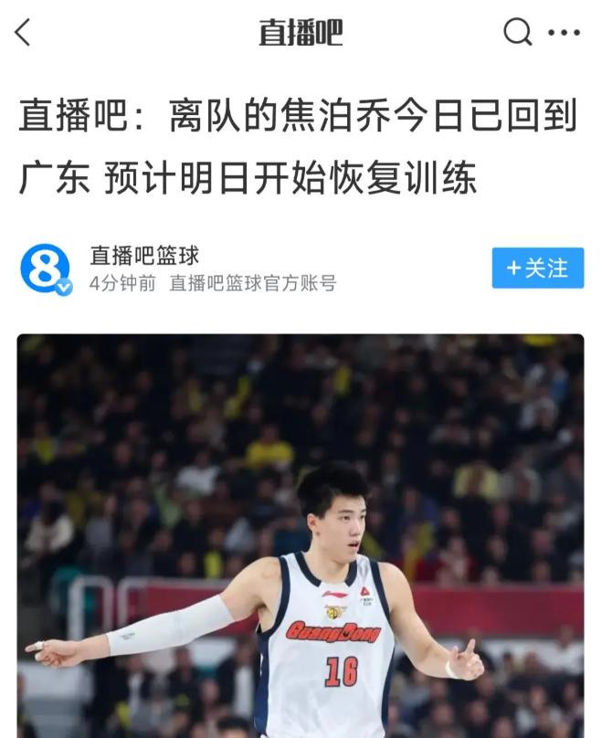 之前离队的内线大将焦泊乔,照旧负责复返广东,展望4月15日就能归队纯熟,最快在18日对阵福建的比赛中复出。