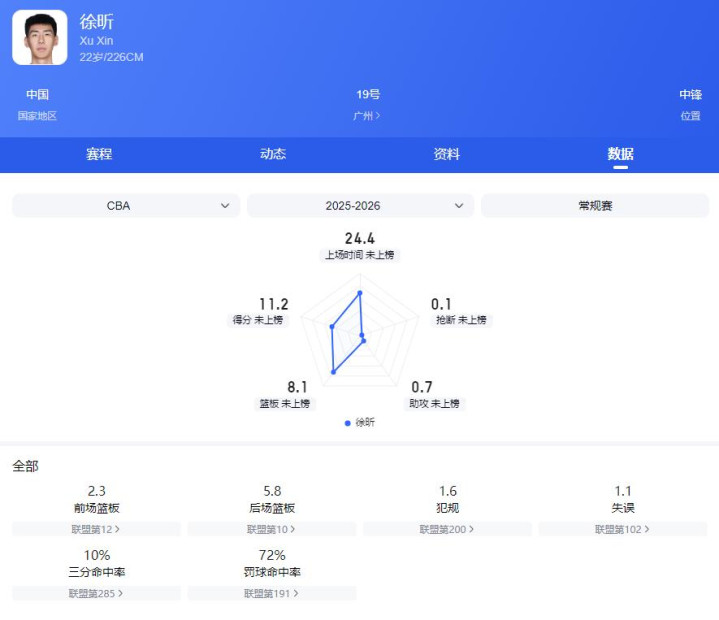 上赛季在广州队,他但是统共的内线中枢,场均能打28.4分钟,孝敬13.3分4.4篮板,打得申明鹊起。