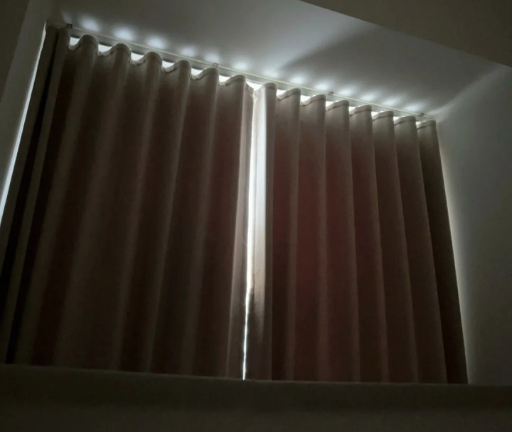 许多东谈主装修选窗帘,都容易被蛇形帘的波澜感诱导,挂在家里确乎显质感。可住进去才发现,漏光问题太憋屈——顶部窗帘和轨谈之间总有裂缝,天刚亮阳光就钻进来,念念睡个懒觉都难;并且蛇形帘得离地才智出波澜造型,晚上开灯后,帘底的光映得满地都是,氛围感径直拉胯。