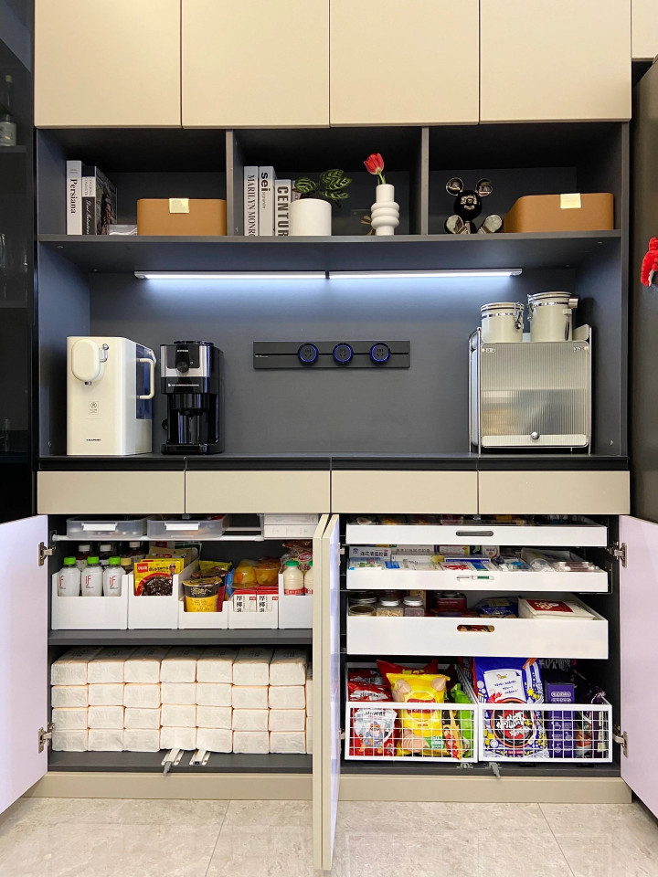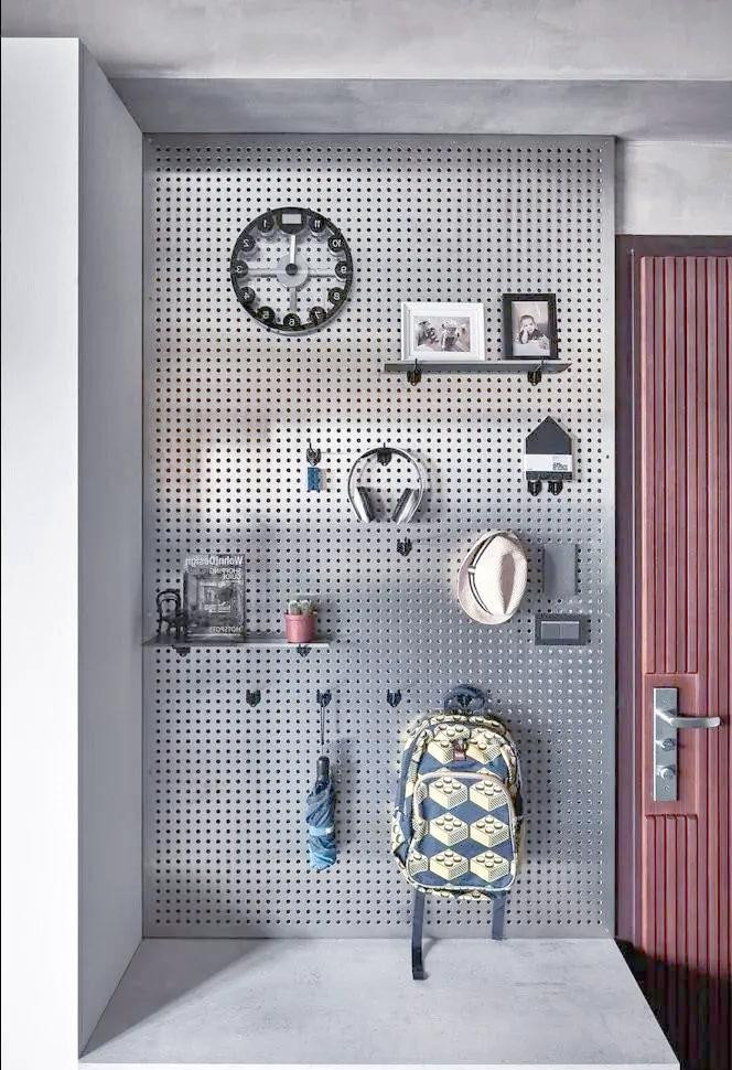 运用好“迂回”和“墙面”。 雪柜和橱柜的侧边,贴上磁吸挂钩,挂围裙、隔热手套;儿童房墙面装上一整面洞洞板或软木板,孩子的涂鸦作品、每周谋略表、小背包,都不错上墙展示,既是一种收纳,亦然温馨的阴私,还不会占用大地空间。