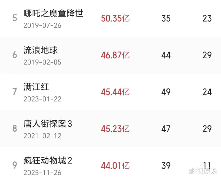 而恰巧的是,《哪吒2》的前作《哪吒之魔童降世》在咱们中国内地原土阛阓的名次中,相似亦然位居第五,这就好像是射中注定一样。