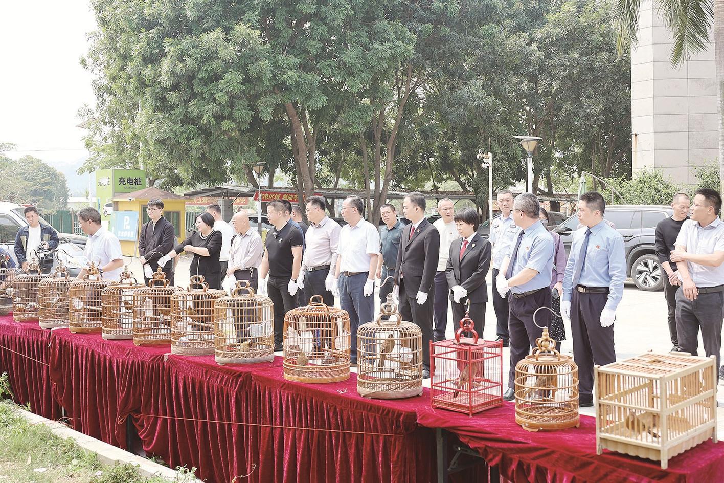 本报讯(赖桂碧 蔡煌杰 龚雅君 文/图)近日,暖热县林业局在允洽山林开展野灵活物放生算作,快要期王法查获的17只画眉鸟放归大当然,以实质行径看管生物各样性,孤寒区域生态均衡。