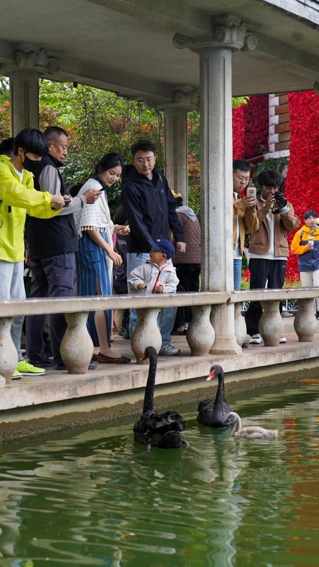 而在长廊另一侧的水域里,另一户黑天鹅“三口之家”雷同温馨。目下这只小天鹅败露比另外三只稍大一些,绒毛更密、体态更挺拔,它抬头跟在父母身旁巡查水面,垂头觅食,看成虽显顽劣,却多了一份小大东说念主般的可人。据悉,这只小天鹅降生于一个多月前,已经在网罗上“刷屏”了许多酬酢媒体。两户黑天鹅之家隔水相望,逸趣横生,为春日的翠湖增添了一抹和善动东说念主的盼望。