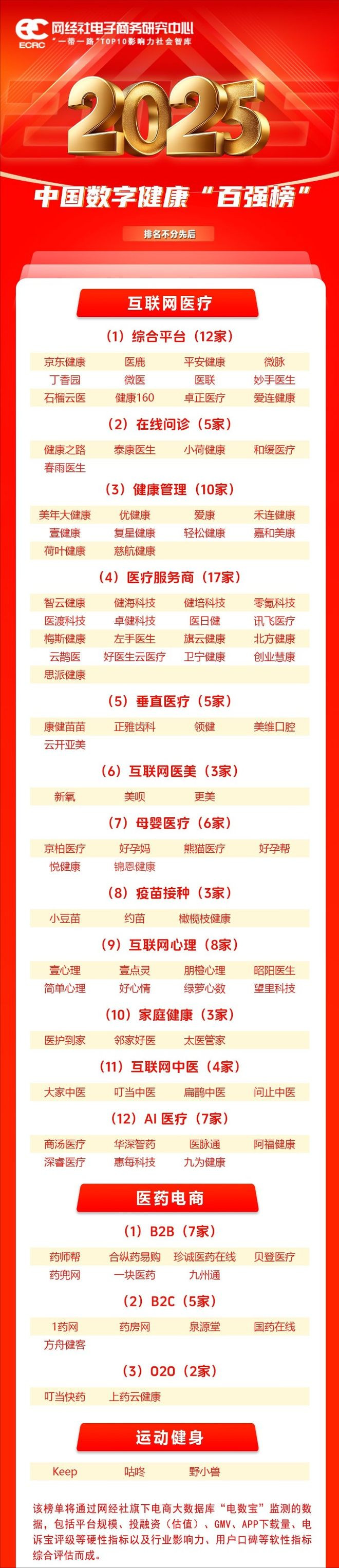 《2025年中国数字健康“百强榜”》名单分为3大类16小类。