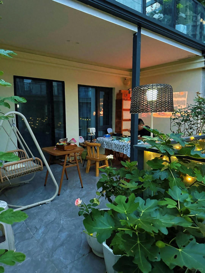 添点小花小草作念软停止,不挡视野但添了档次感。晚上开串灯不开大灯,暖黄光辉照着,讲话声皆会不自发放轻。