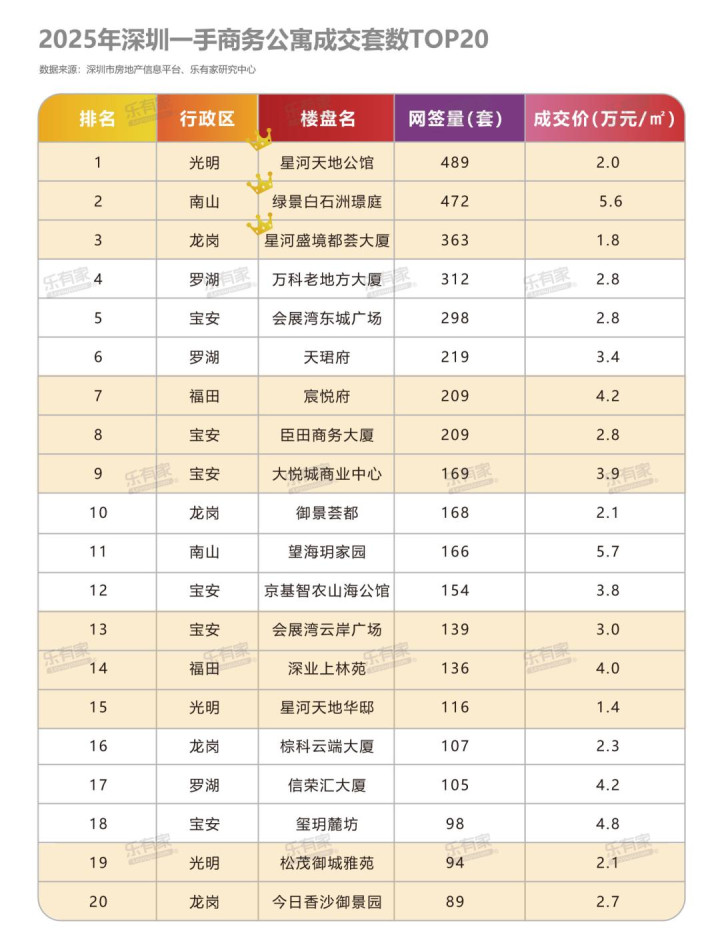 日前,乐有家询查中心也统计了2025年热销的一手公寓产物,有此类投资需求的买家不错参考。
