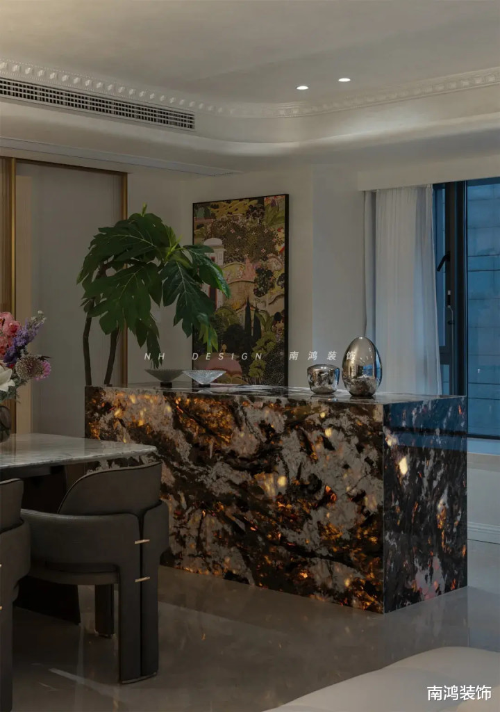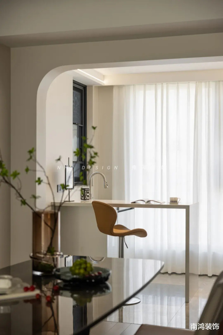 吧台的功能性不遑多让,比较岛台来说它也更微细纯真,不错单辟出一处氛围满足的空隙区,适配煮茶、品酒、轻办公、阅读等种种场景。