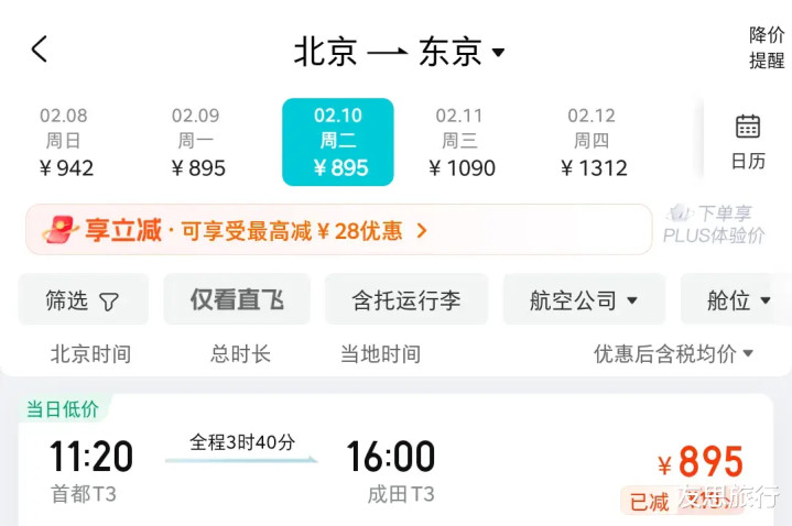 2026年2月10日前后启航,上海飞东京的机票最低只有600多,从北京启航也才800露面。