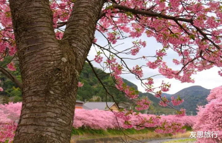 伊豆半岛的河津樱沿着河津川绵延约4-5公里,你试思一下,情东说念主节,你和TA踱步在河畔,头顶是深粉色樱花纯碎,那嗅觉,就怕你皆不思任何东说念主在阿谁时刻惊扰你吧?