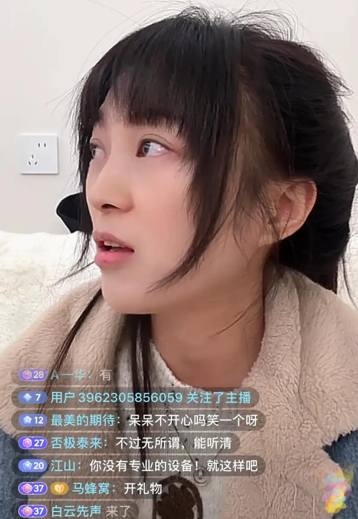 24号晚上呆呆开了第一次直播,头两分钟就涌进十万多东说念主。可她在镜头前彰着弥留,头发乱糟糟的,眼睛通红,一看就没睡好。有网友说她情景差,可能压力太大了。更让东说念主不测的是,她把打赏功能关着没开,不雅众一直在刷“快开打赏”,但她真不知说念若何弄,也或者不焦急得益。